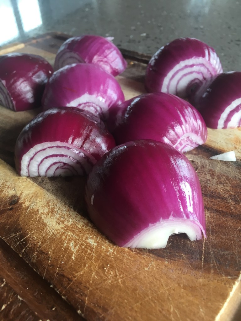 2 large red onions, sliced not super thin cause you’ll lose that crunch