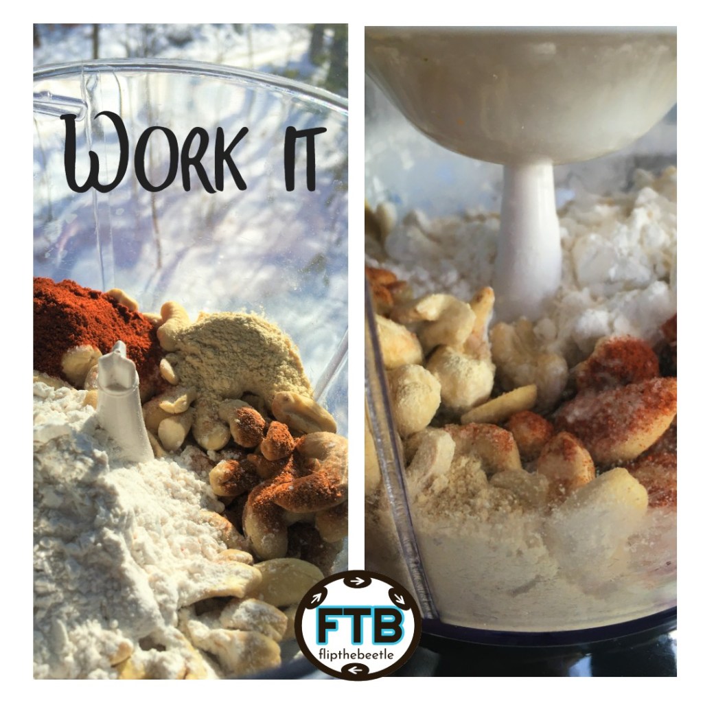 COMBINE the cashews and spices in a food processor until it looks pebbly.