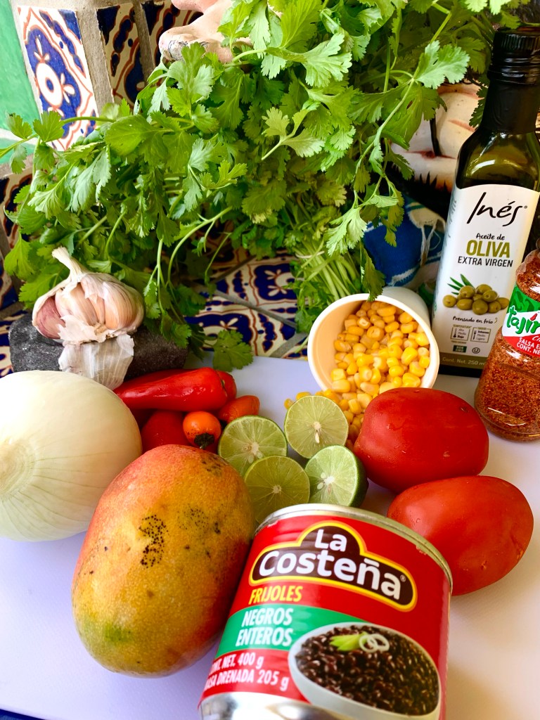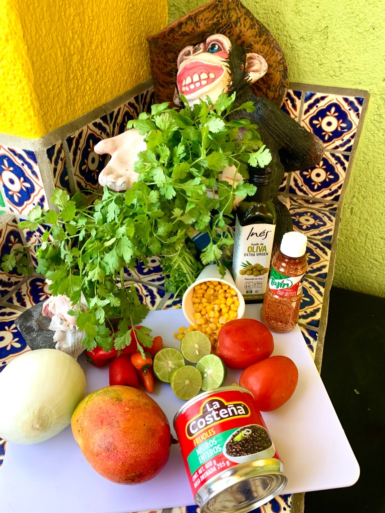 Notes on some fun knife skills for this black bean, mango and corn salsa.