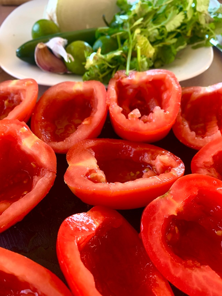 De-seed your jalapeños and tomatoes: