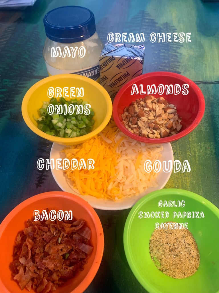 - 1 cup of EACH cheddar & gouda