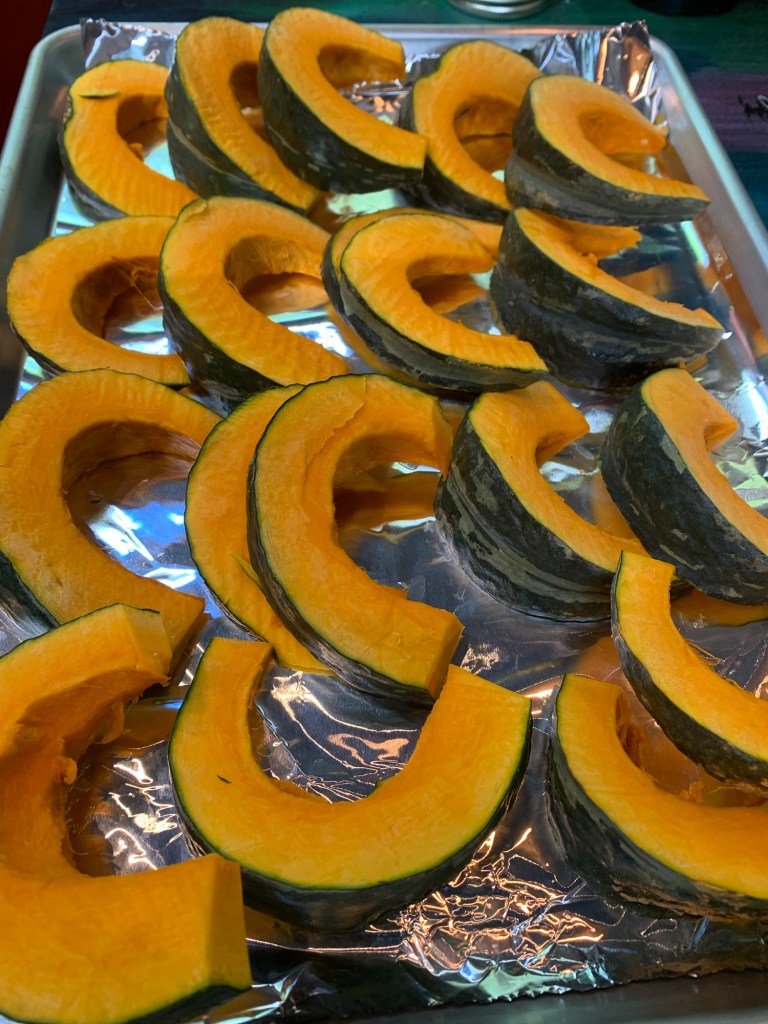 Scoop out the seeds and set them aside we’re going to roast them too.