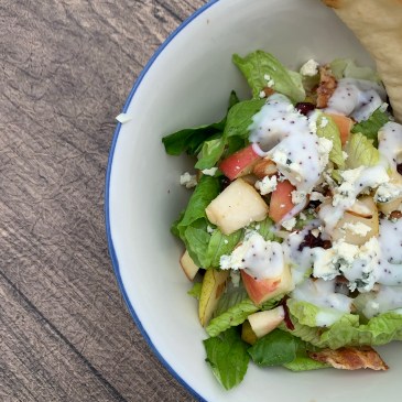A tossed salad all dressed up to impress. Dried fruit, fruit fruit, nuts and cheese. Seriously addictive. Seriously easy. … More fall colours salad ๐